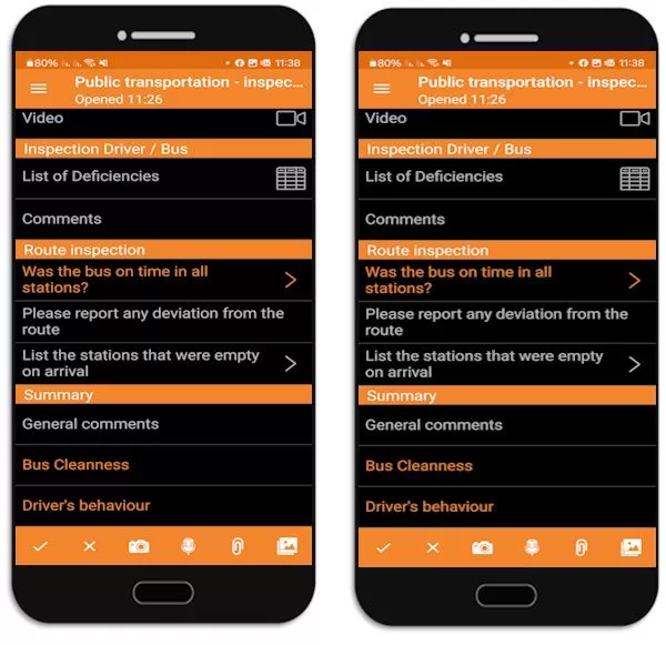 Gli ispettori delle navette sono tenuti a eseguire ispezioni dei veicoli al fine di garantire la sicurezza dei passeggeri. Questo può essere un controllo e un resoconto sull’integrità dei sedili, delle cinture di sicurezza, dell’estintore e altro ancora. L’applicazione mobile garantisce che tutti gli argomenti rilevanti siano segnalati e documentati.